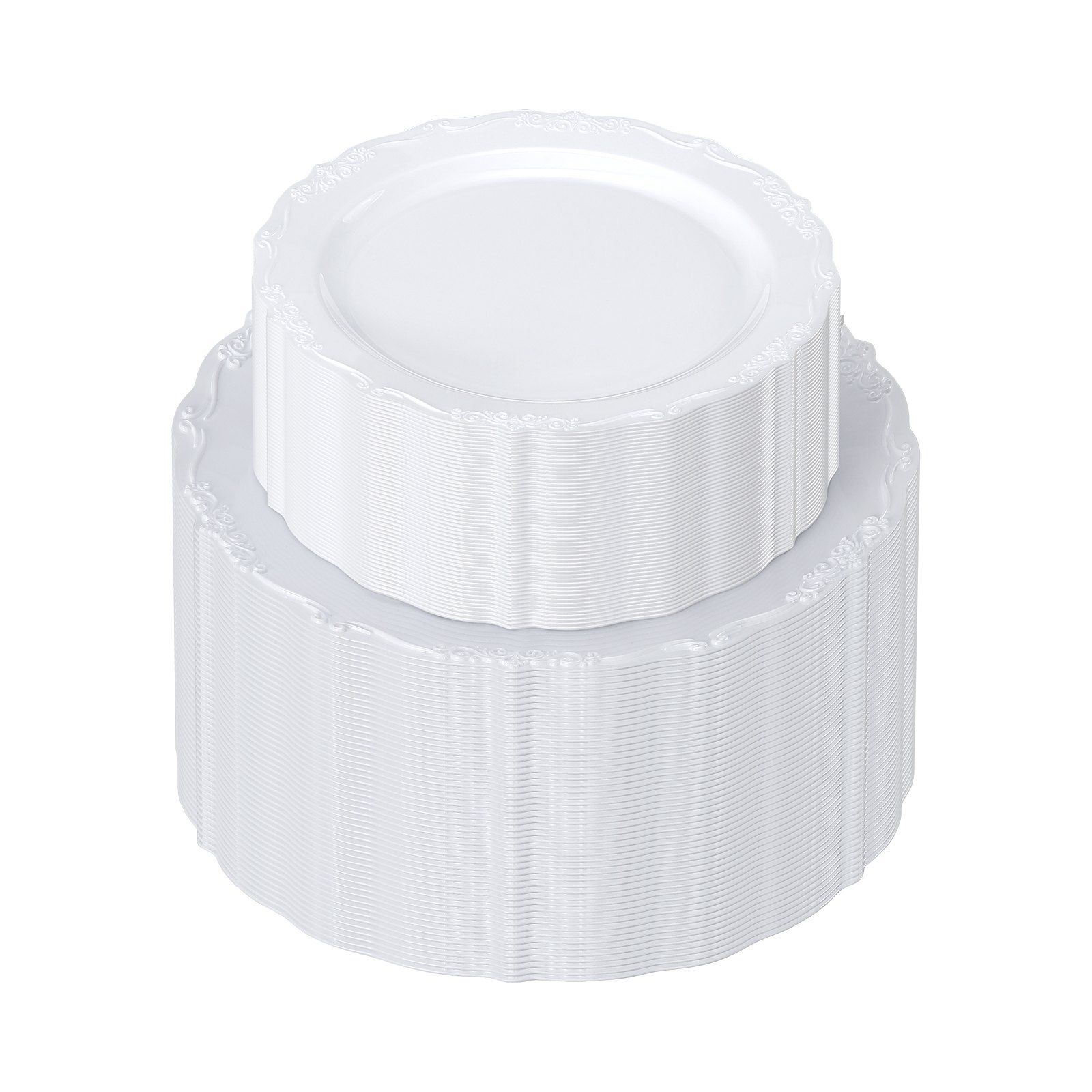1.Value Pack: This plastic plates set includes 50 dinner plates and 50 dessert plates in two versatile sizes, serving up to 50 people at once. It is ideal for large gatherings and celebrations