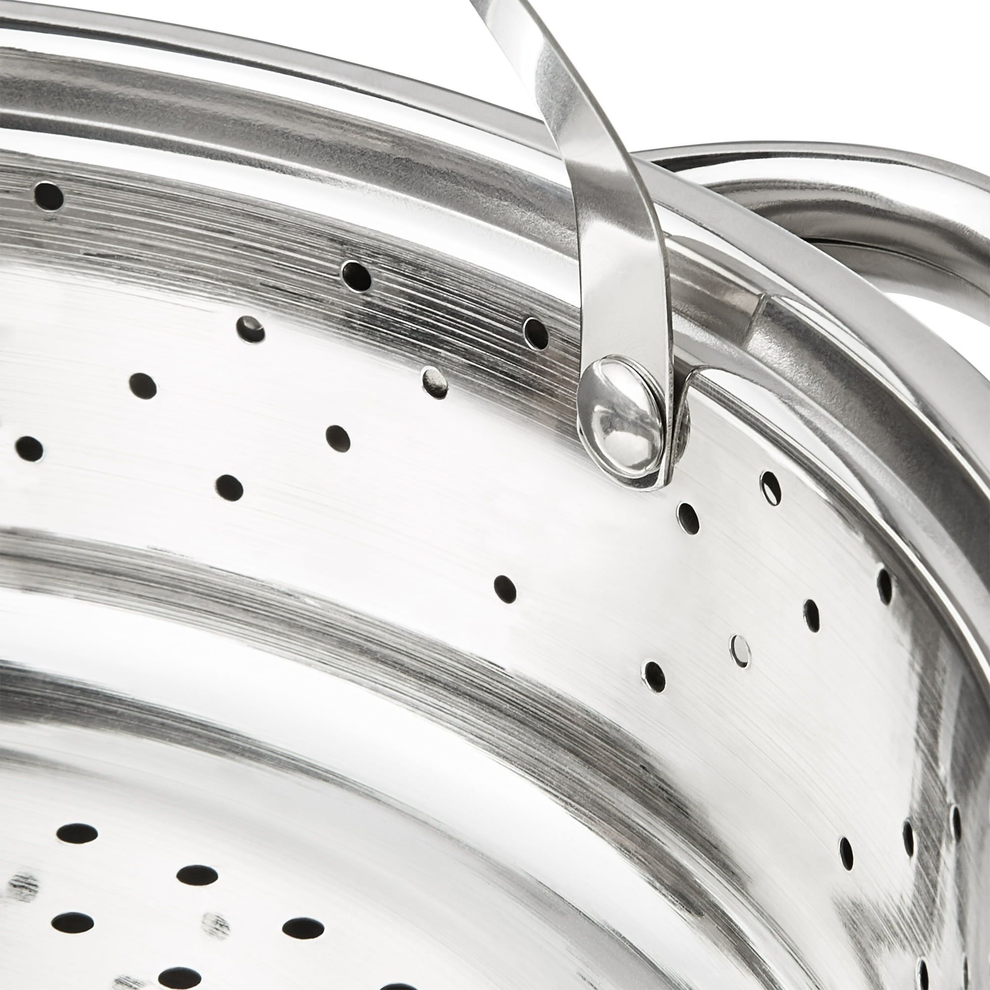 Prepare amazing sauces, pastas, potatoes, corn-on-the-cob, and more with the ample Stainless Steel 8-Quart Multi-Cooker with Glass Lid. This large multi-cooker measures 9.76" L x 9.76" W x 12.60" H and is perfect for any occasion. The 4-piece set includes a stock pot, colander, steamer basket, and glass lid. Designed with stylish stainless steel and glass, it’s sure to coordinate with your existing cookware. This sturdy multi-cooker features stay-cool handles, a heat- and shatter-resistant glass lid, durable, stainless steel construction, and a tri-ply base for quick and even cooking. Ideal for get-togethers, backyard barbecues, and other special events, the 4-Piece Stainless Steel 8-Quart Multi-Cooker with Glass Lid is a must-have cookware item in any kitchen.