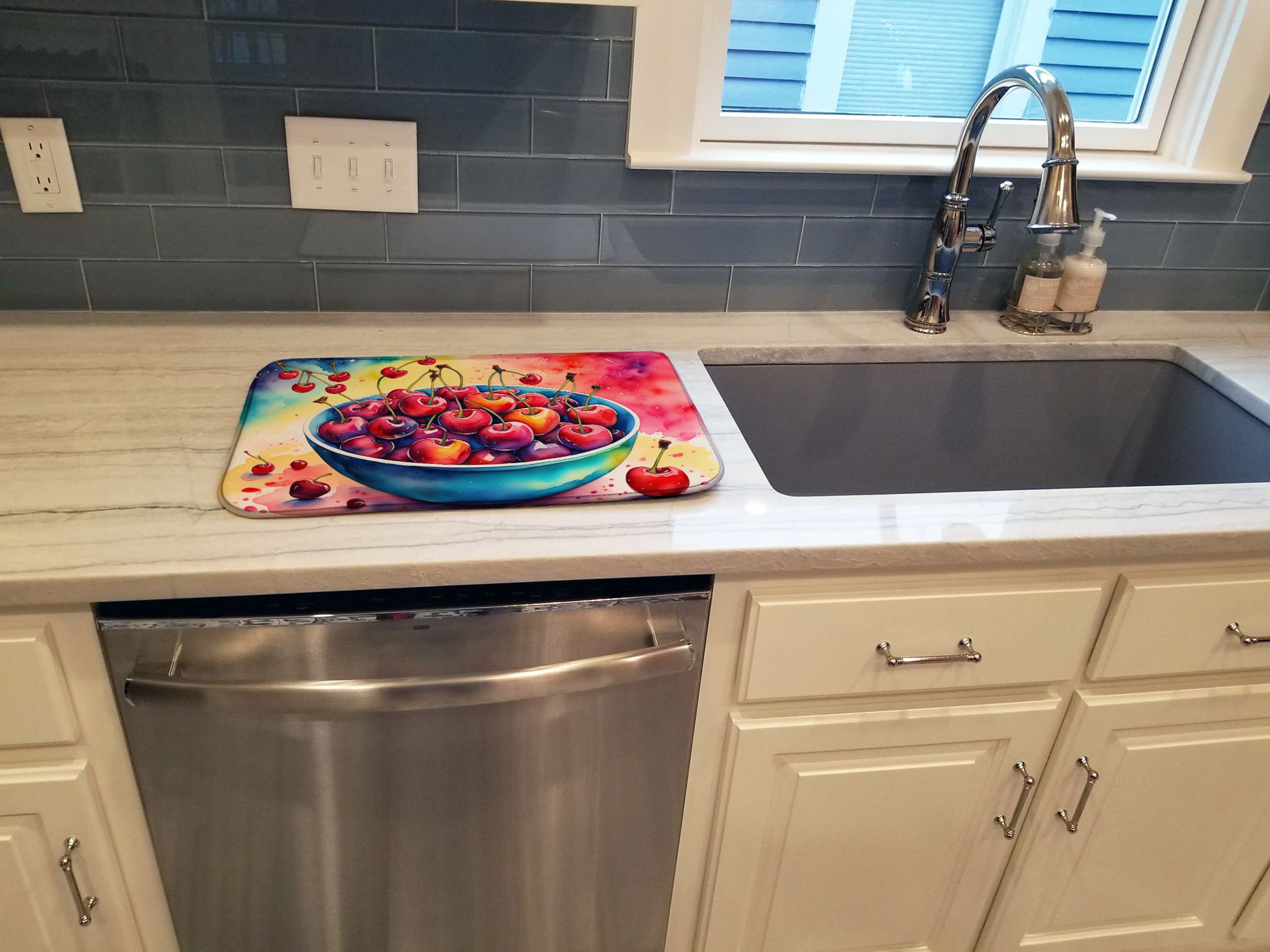 Home > Colorful Cherries Dish Drying Mat Absorbent Dish Drying Mat Pad for Kitchen Counter Dish Drainer Mat for Countertop, 14 x 21", Multicolor