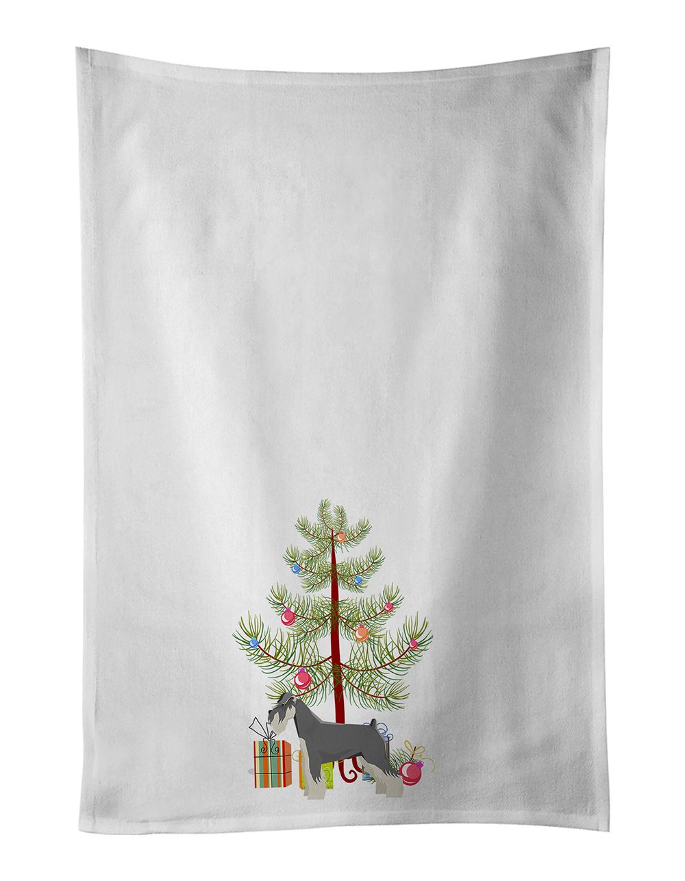 Kitchen Towel Set of 2 featuring breed specific Schnauzer artwork. Celebrate Christmas with this Christmas Kitchen Cotton Towels. This Kitchen Towel Set of 2 is from Caroline's Treasures collection Christmas Tree. Spruce up your kitchen decor with Caroline's Treasures Decorative White Kitchen Towel Set. This set of two dish towels showcases beautiful artwork from one of our talented artists, making them both practical and visually appealing. These towels are crafted from 100% cotton, offering excellent absorbency and durability, making them ideal for any kitchen task. Each white towel measures 19 inches by 28 inches, providing ample coverage for drying dishes or wiping up spills. The standout feature of these towels is the full-color artwork design printed on each one. They can serve as a vibrant accent in your kitchen, turning a functional item into a delightful piece of decor. When it comes to care, these towels are machine washable in cold water and can be dried on low heat. Remember to always use a pressing cloth when pressing the design, and avoid using bleach on the decorated towel. The Decorative White Kitchen Towel Set makes a great gift or a stylish addition to your own kitchen. This Kitchen Cotton Towels is from Caroline's Treasures Dogs category of products.