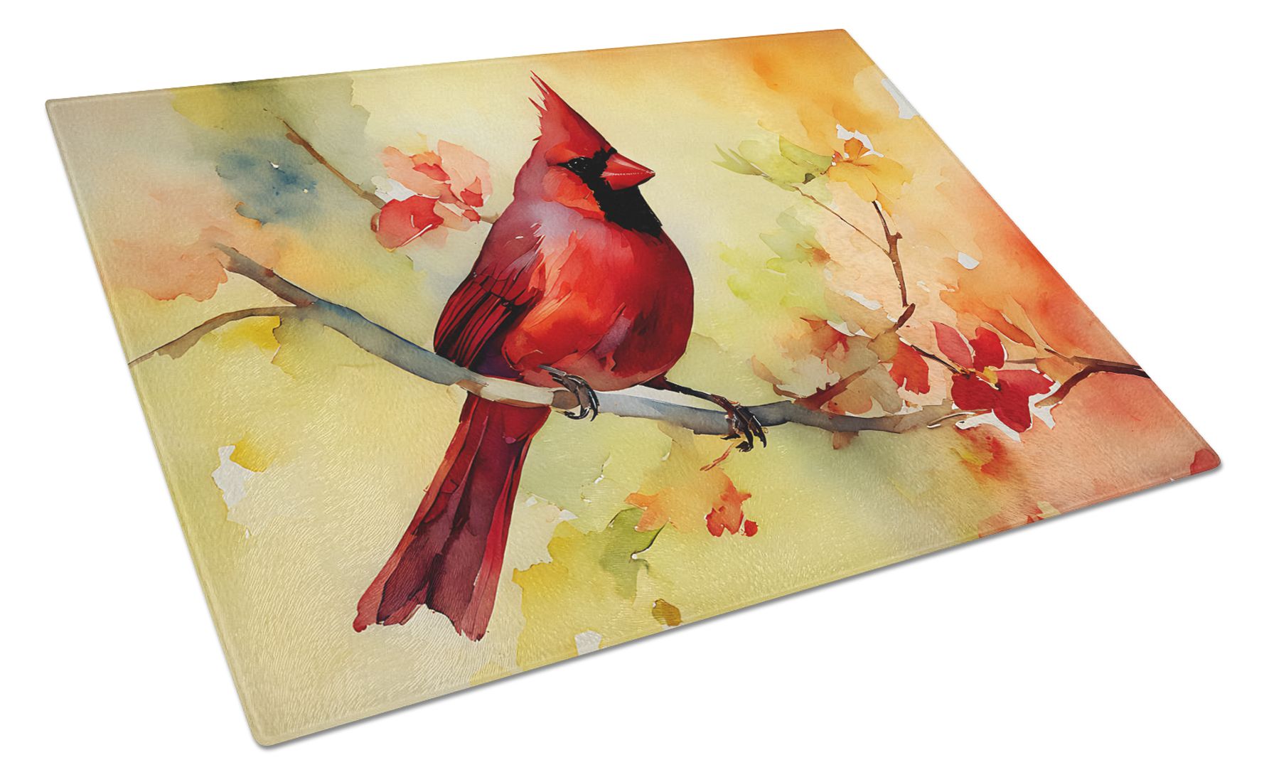 Glass Cutting Board featuring breed specific Cardinal artwork. Introduce your kitchen to the vibrant, large Decorative Glass Cutting Board from Caroline's Treasures. Crafted from resilient tempered glass, this board is not only a utilitarian necessity but also a colorful art piece. With its generous dimensions of 15 inches in height and 12 inches in length, it offers ample space for all your cutting needs. Every piece showcases captivating artwork from distinguished artists, bringing an aesthetic edge to your kitchen. Beyond its attractive design, this cutting board ensures your countertop stays pristine and unscathed, owing to its heat-resistant properties. Engineered with user convenience in mind, it features non-skid feet for stability, and rounded corners for additional safety. Its robust construction renders it virtually unbreakable, guaranteeing longevity. The board comes with protective feet bumpers, maintaining its position during use. This product is recommended to be hand washed only. Proudly printed and assembled in the United States, this cutting board exemplifies superior craftsmanship. With Caroline's Treasures' Decorative Glass Cutting Board, you're investing in a blend of functionality and artistic flair.