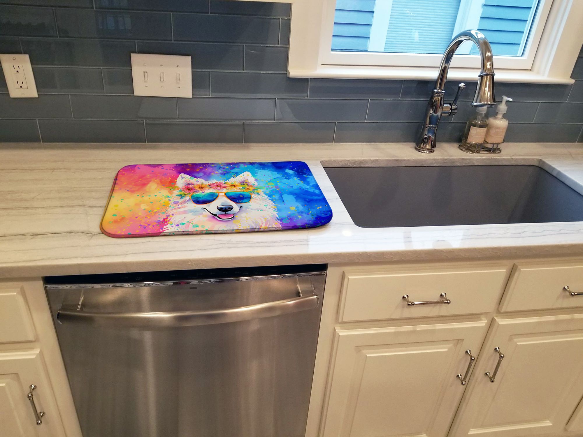 Home > Samoyed Hippie Dawg Dish Drying Mat Absorbent Dish Drying Mat Pad for Kitchen Counter Dish Drainer Mat for Countertop, 14 x 21", Multicolor