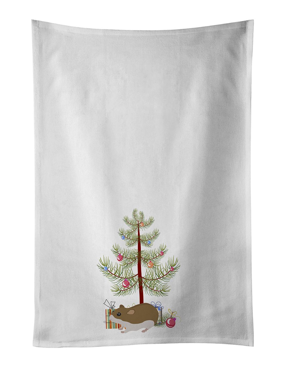 Kitchen Towel Set of 2 featuring breed specific Chinese Hamster artwork. Celebrate Christmas with this Christmas Kitchen Cotton Towels. This Kitchen Towel Set of 2 is from Caroline's Treasures collection Merry Christmas Tree. Spruce up your kitchen decor with Caroline's Treasures Decorative White Kitchen Towel Set. This set of two dish towels showcases beautiful artwork from one of our talented artists, making them both practical and visually appealing. These towels are crafted from 100% cotton, offering excellent absorbency and durability, making them ideal for any kitchen task. Each white towel measures 19 inches by 28 inches, providing ample coverage for drying dishes or wiping up spills. The standout feature of these towels is the full-color artwork design printed on each one. They can serve as a vibrant accent in your kitchen, turning a functional item into a delightful piece of decor. When it comes to care, these towels are machine washable in cold water and can be dried on low heat. Remember to always use a pressing cloth when pressing the design, and avoid using bleach on the decorated towel. The Decorative White Kitchen Towel Set makes a great gift or a stylish addition to your own kitchen. This Kitchen Cotton Towels is from Caroline's Treasures Rodents category of products.