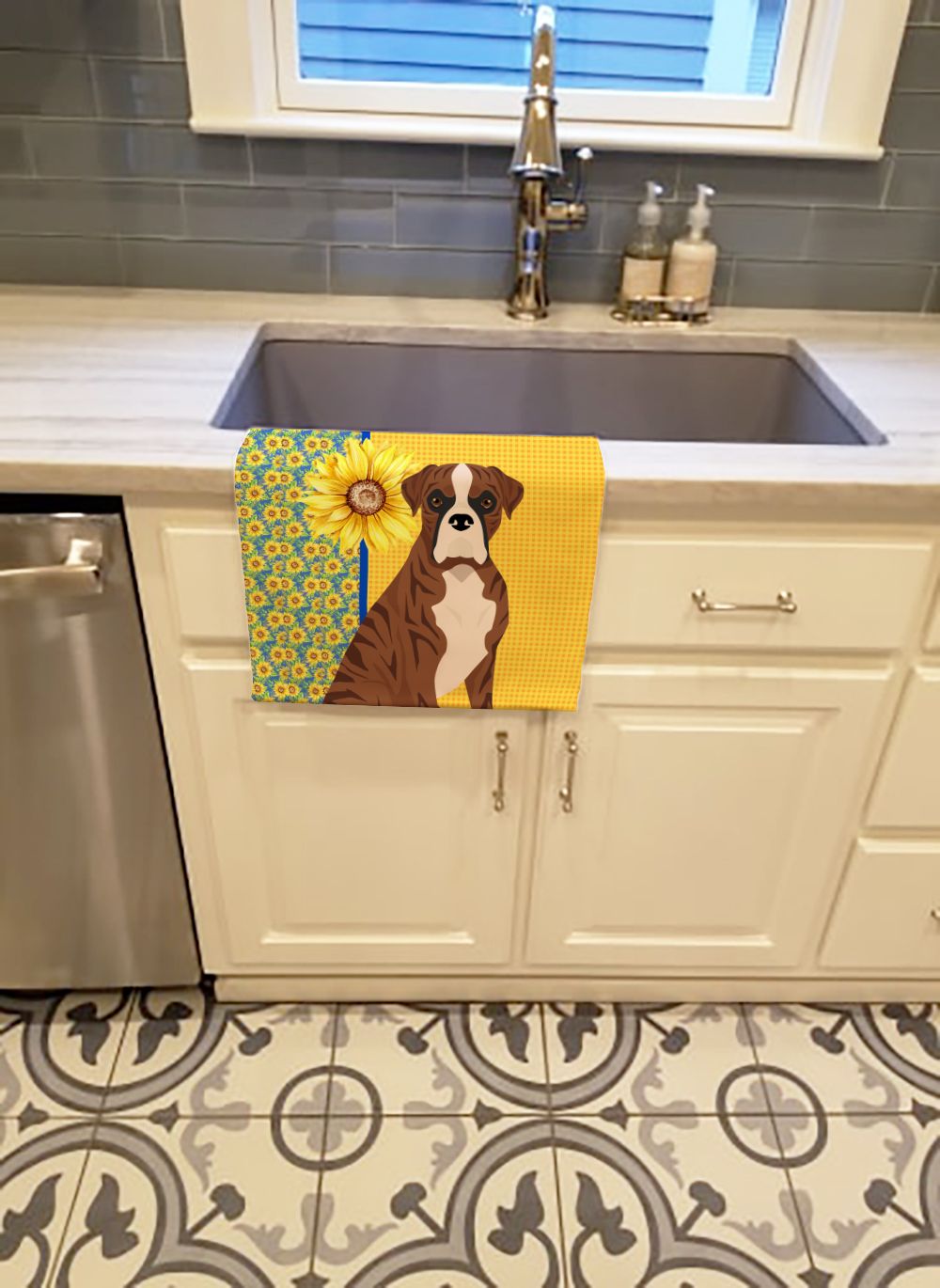 Kitchen Towel featuring breed specific Boxer artwork. Add this colorful Kitchen Towel to decorate for Summer, This Kitchen Towel is from Caroline's Treasures collection Summer Sunflowers. Experience the perfect blend of aesthetic appeal and functional excellence with our Plush Velour Kitchen Towels. These are not your ordinary decorative kitchen towels that gather dust. Instead, they are designed to be as practical as they are stylish. The front layer of our towel is constructed from a minky plush polyester, known for its durability and color retention. Unlike conventional kitchen towels, the artwork on our towels is dyed directly into the fabric, ensuring vibrant colors that last. Polish your glassware to a brilliant sparkle using the plush front side of the towel. Flip to the back, crafted from 100% cotton terry loop, to exploit its exceptional absorbency for drying dishes or wiping down counters. Our kitchen towels redefine the concept of functional art, offering lasting quality that maintains the towel's shape over time. Measuring 15 inches by 25 inches and weighing 2.3 lbs per dozen, these towels deliver an overwhelming sensory experience with their soft, plush, and smooth texture. The edges are meticulously finished with binding, enhancing their durability and visual appeal. For your convenience, these towels are machine washable and can be dried on low heat. After the first wash, the top fabric becomes even softer and fluffier, eliminating the need for ironing. Treat your kitchen to the luxury and functionality it deserves with our plush velour kitchen towels. This Kitchen Towel is from Caroline's Treasures Dogs category of products.