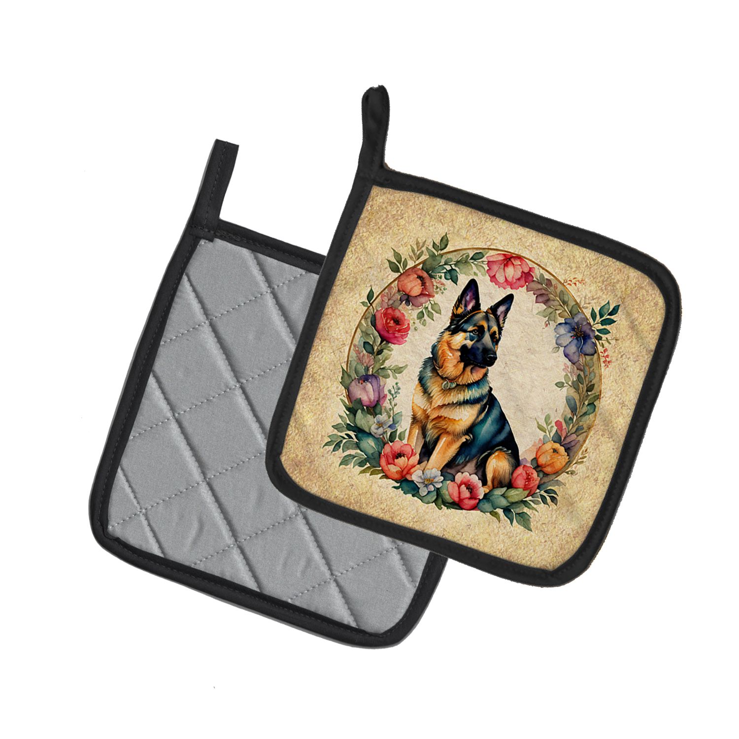 Home > German Shepherd and Flowers Pair of Pot Holders Kitchen Heat Resistant Pot Holders Sets Oven Hot Pads for Cooking Baking BBQ, 7 1/2 x 7 1/2
