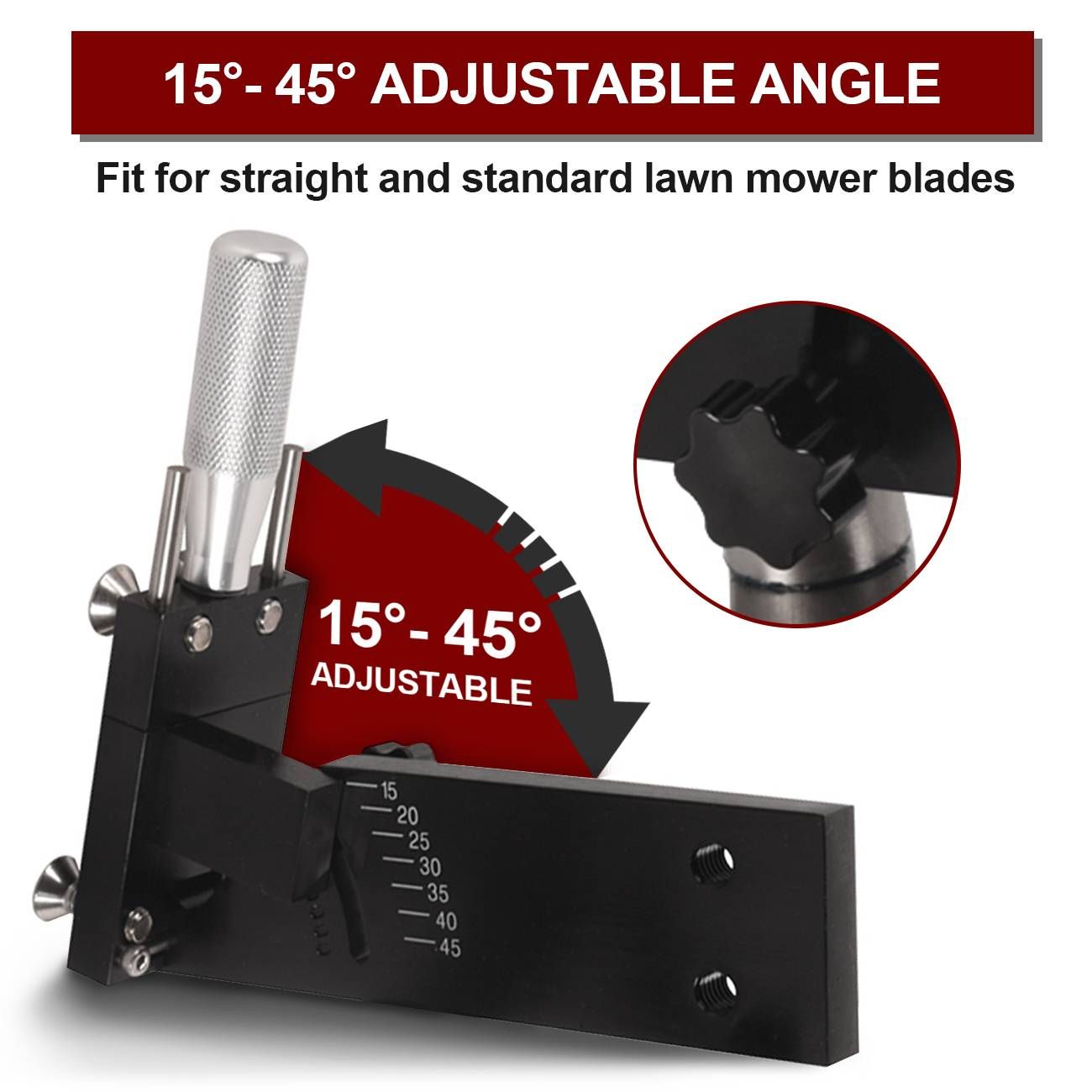 [Quick Cut]The sharpener with unique design has a vice head to hold the mower blade and an articulating arm to attach the grinder. Holds blades securely to perfectly sharpen mulching blades in a matter of seconds. Grinding multiple blades simply and flawlessly.